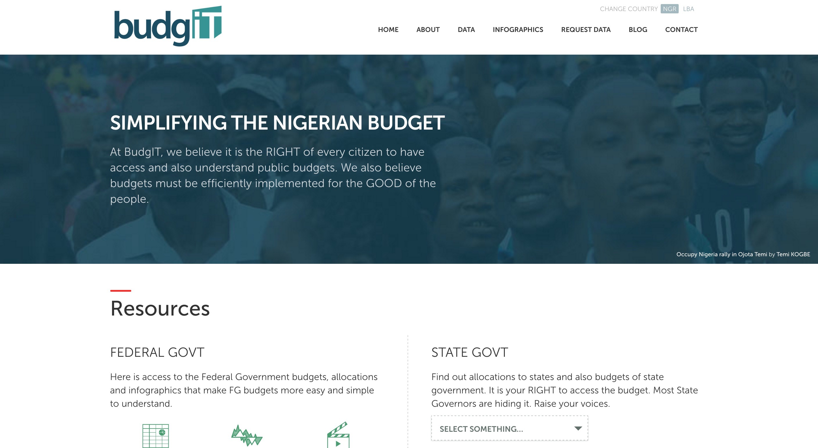 BudgIT is a civic organization that applies technology to intersect citizen engagement with institutional improvement, to facilitate societal change.